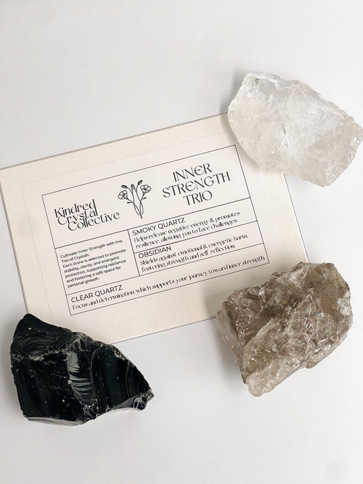Tap into your resilience and reconnect with your personal power with our Inner Strength Trio, featuring raw, unpolished pieces of Obsidian, Smoky Q...